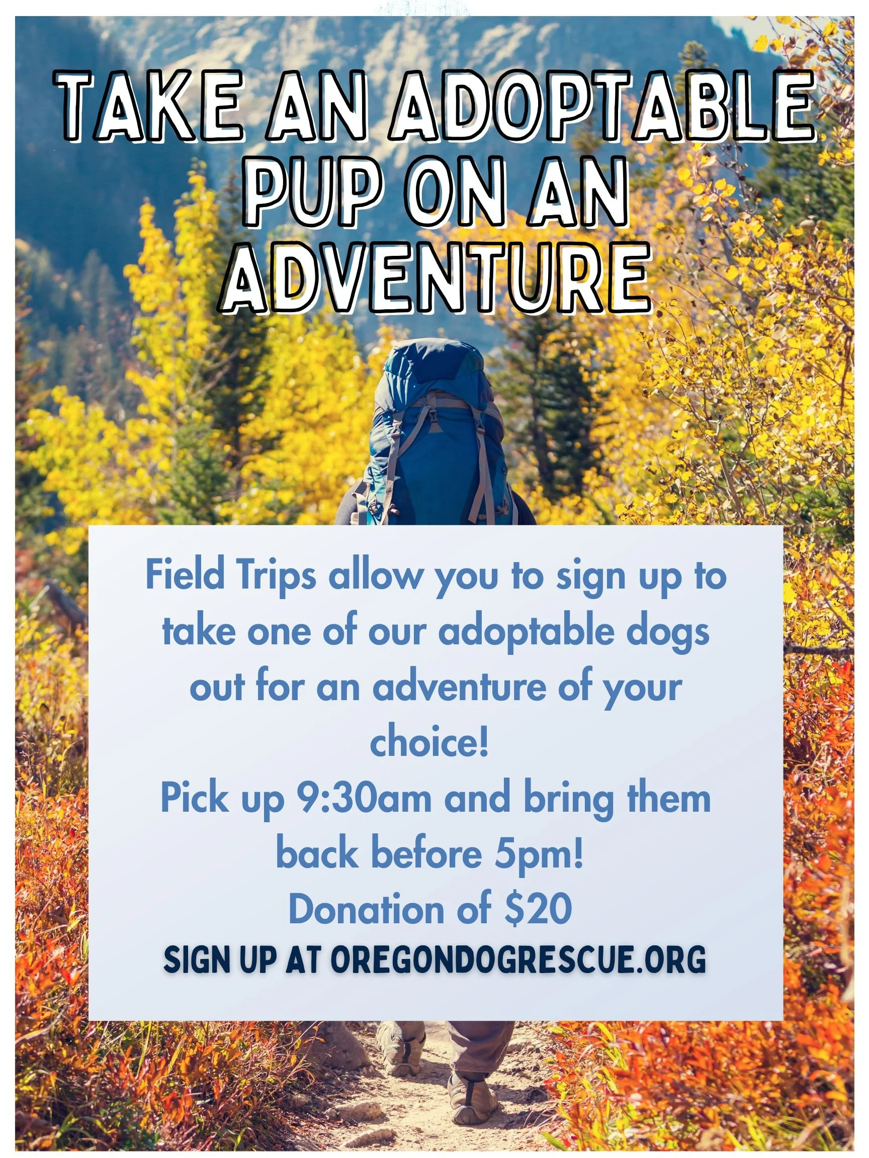If you take photos on your adventure, we’d love to share them on our social media! Tag us @oregondogrescue or email to ashley@oregondogrescue.org